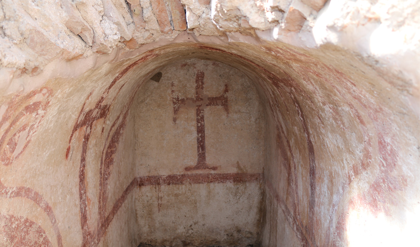 Το σημαντικότερο εύρημα ήταν δυο πολυτελείς καμαροσκεπείς τάφοι. Οι δύο καμαροσκεπείς τάφοι, όπως και οι πολυάριθμοι κιβωτιόσχημοι και οι ελεύθερες ταφές που εντοπίστηκαν στο εσωτερικό, θεωρήθηκε ότι προϋπήρξαν της βασιλικής, επειδή η στάθμη τους βρίσκεται χαμηλότερα από τα υπολείμματα του ψηφιδωτού δαπέδου.