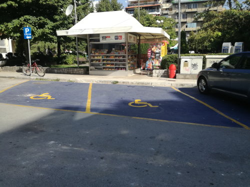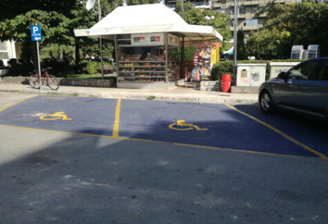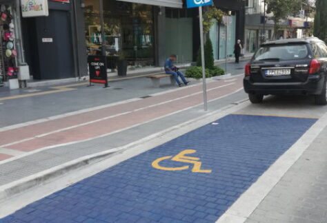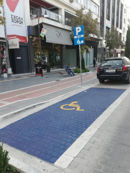 Σήμανση με έντονο χρωματισμό των θέσεων στάθμευσης ΑΜΕΑ.