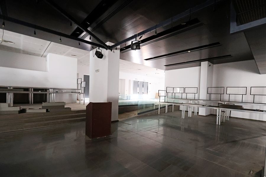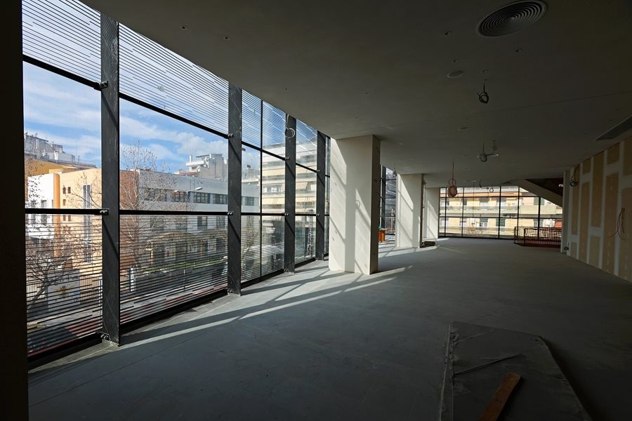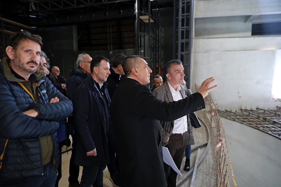 Κατά την ξενάγηση που πραγματοποίησε η επιβλέπουσα μηχανικός του Δήμου κα Σοφία Ρωμανάσου, οι κ.κ. Κουρέτας, Μαμάκος ενημερώθηκαν ότι αυτή τη στιγμή πραγματοποιούνται εργασίες στην αίθουσα των θεατών, που είναι πολύ κομβικές για το κτίριο, καθώς μετά την ολοκλήρωσή τους θα επιτραπεί να προχωρήσουνε τα συνεργία στις λοιπές εργασίες. Οι τρέχουσες ηλεκτρομηχανολογικές εργασίες αφορούν στο θόλο της αίθουσας των θεατών, ο οποίος θα καλυφθεί με ξύλινη επένδυση με την αποπεράτωσή τους. Το επόμενο στάδιο των εργασιών αφορά στην τοποθέτηση του δαπέδου της αίθουσας των θεατών και των καθισμάτων, καθώς και του δαπέδου της σκηνής. Η κα Ρωμανάσου διευκρίνισε ότι έχουν από πέρυσι ολοκληρωθεί οι εργασίες που αφορούσαν στο αναβατόριο της σκηνής, τον μηχανισμό του περιστρεφόμενου τμήματος αυτής, οι οποίοι έχουν ελεγχθεί ως προς τη λειτουργία τους και πιστοποιηθεί. Μετά την ολοκλήρωση των ξύλινων επενδύσεων στην αίθουσα των θεατών και στη σκηνή, θα ακολουθήσουν εργασίες τελικών επενδύσεων στα δύο φουαγιέ, καθώς και λοιπές μικροεργασίες τελικού σταδίου.